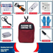 Includes the following contents arranged in a red rip-stop nylon rapidly deployable zippered pack: