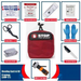 Includes the following contents arranged in a red rip-stop nylon rapidly deployable zippered pack: